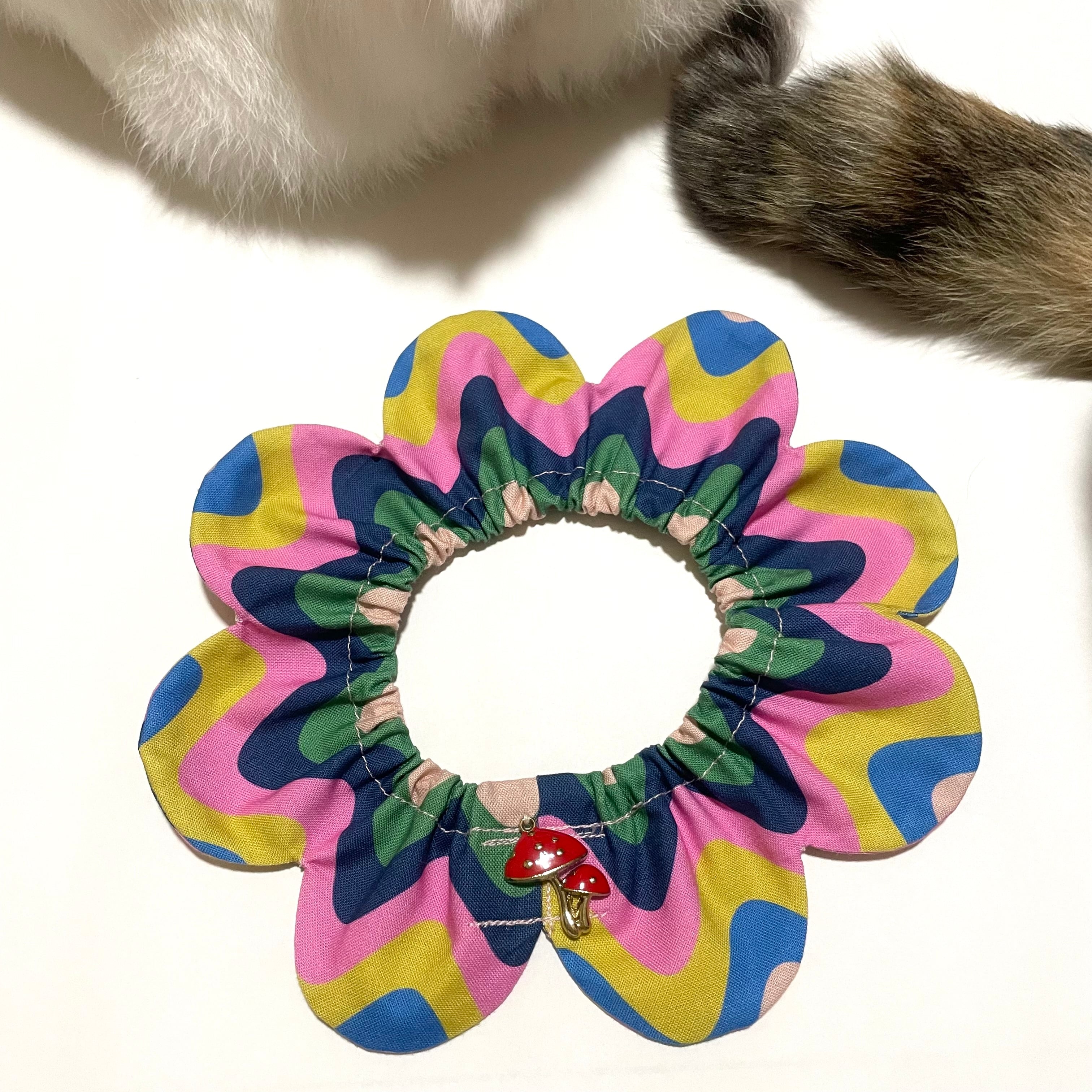 どこかレトロな幾何学模様です。 毒きのこのチャームを付けてみました。
