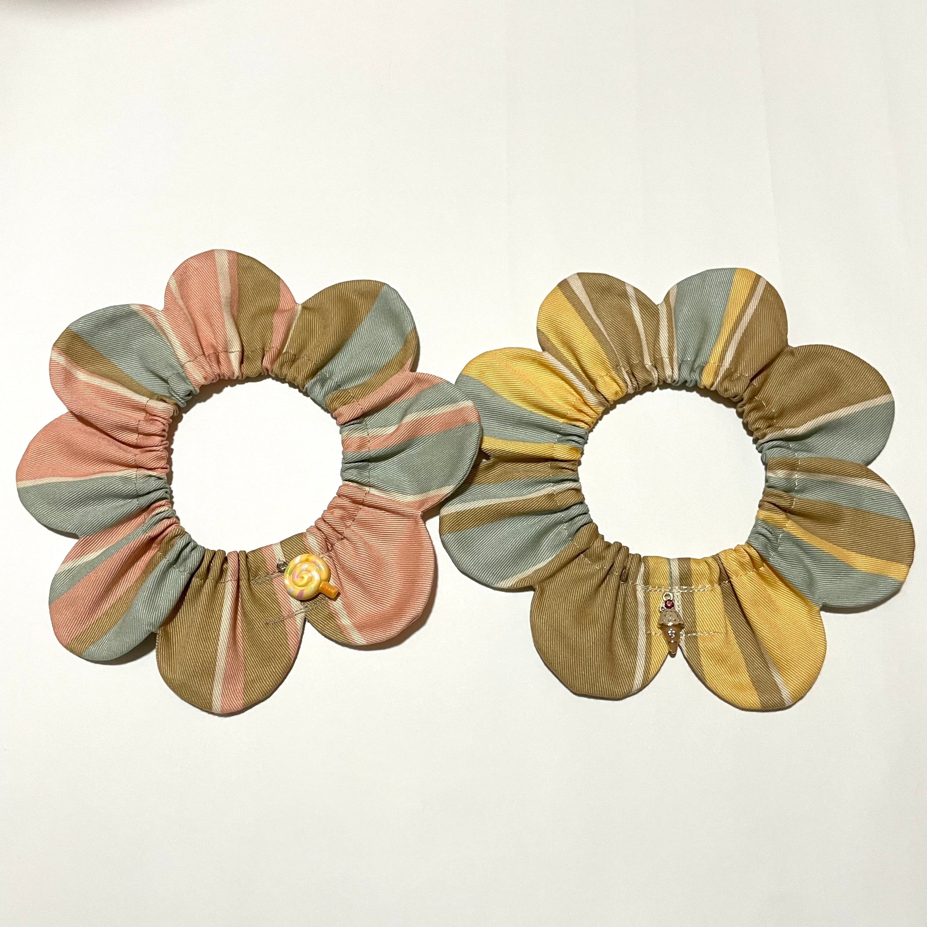 くすんだカラーがとってもおしゃれなストライプです。 実際着けると可愛すぎて悶絶でした笑 スイーツのチャームが付いています。